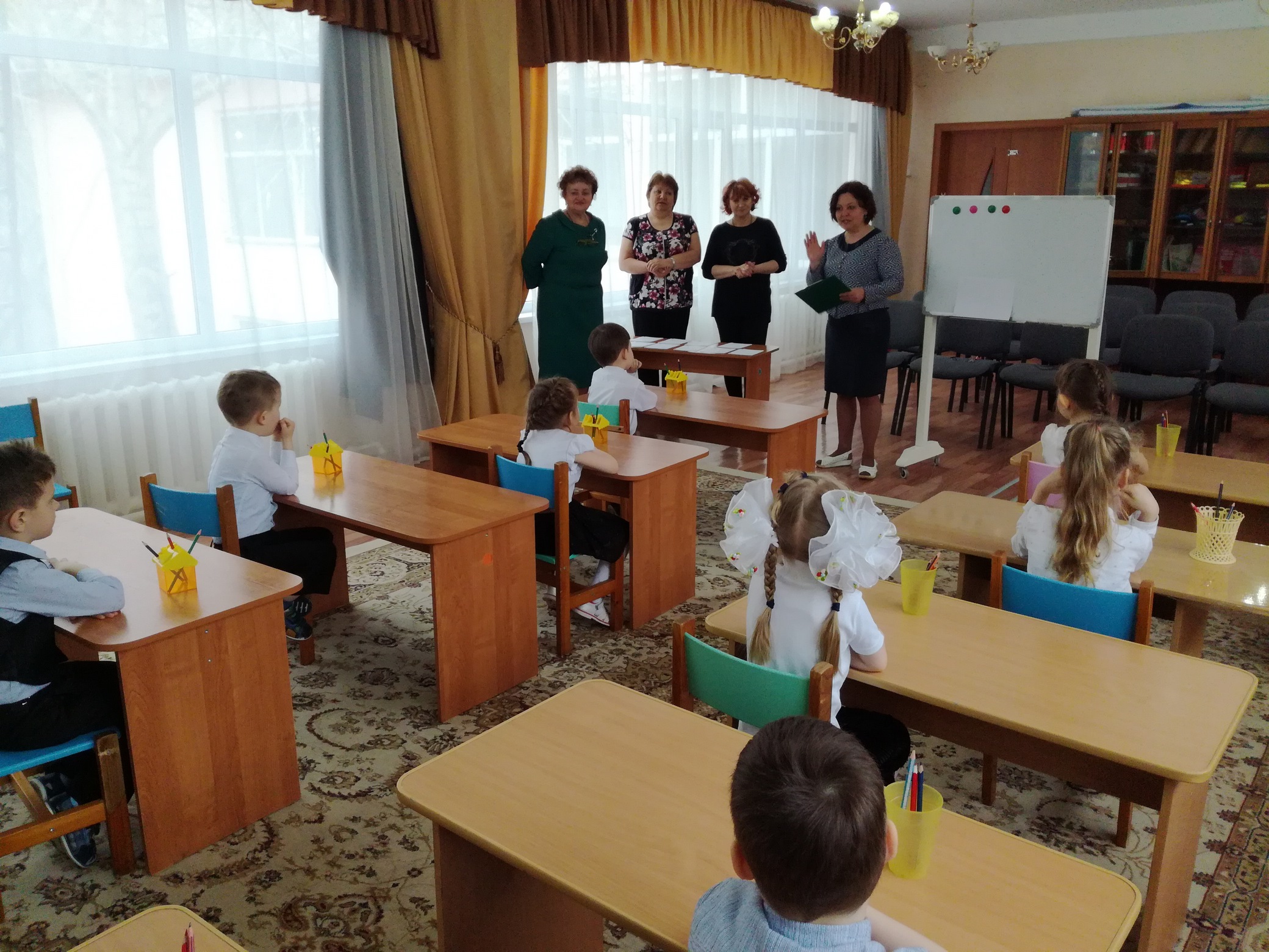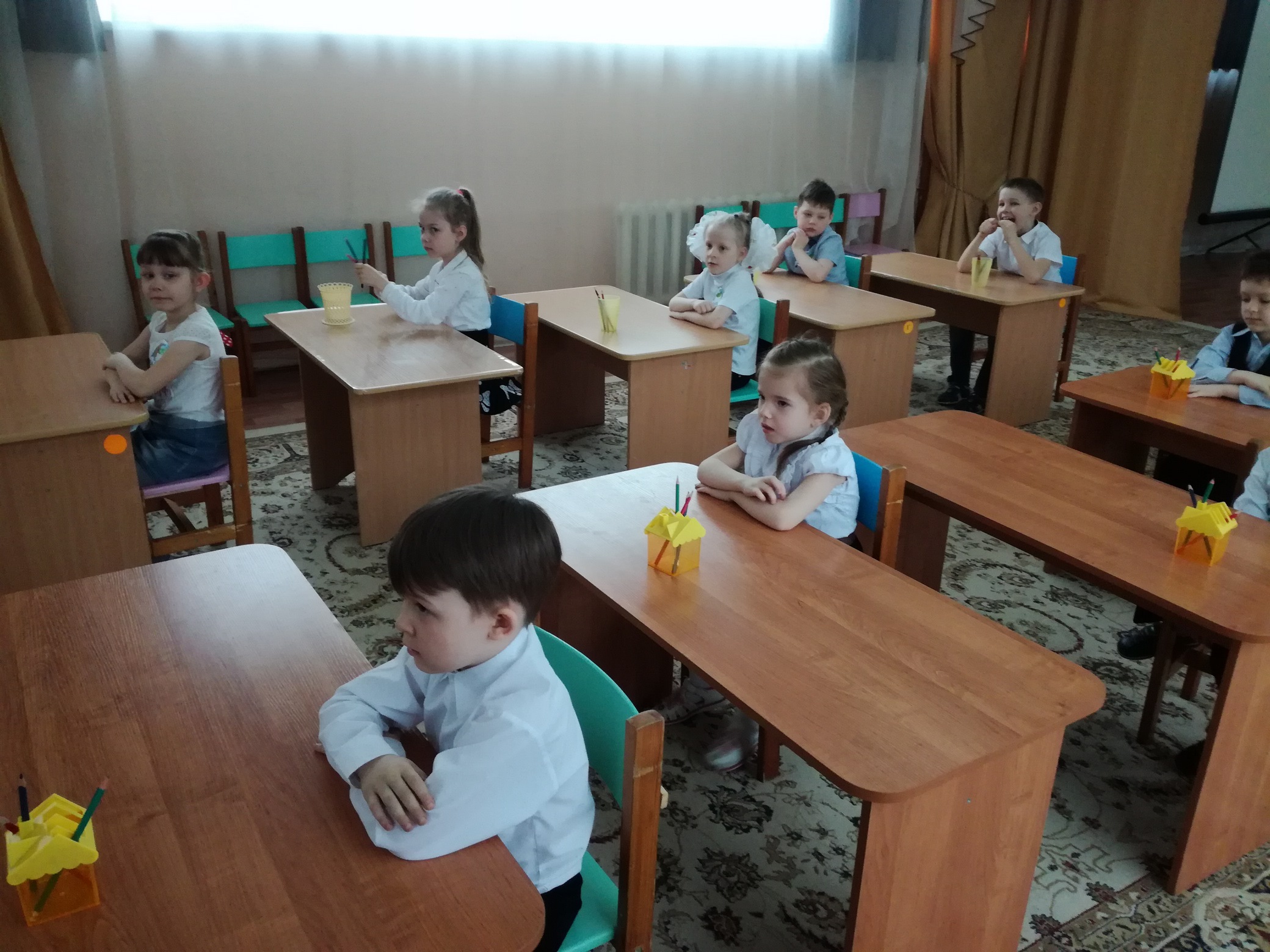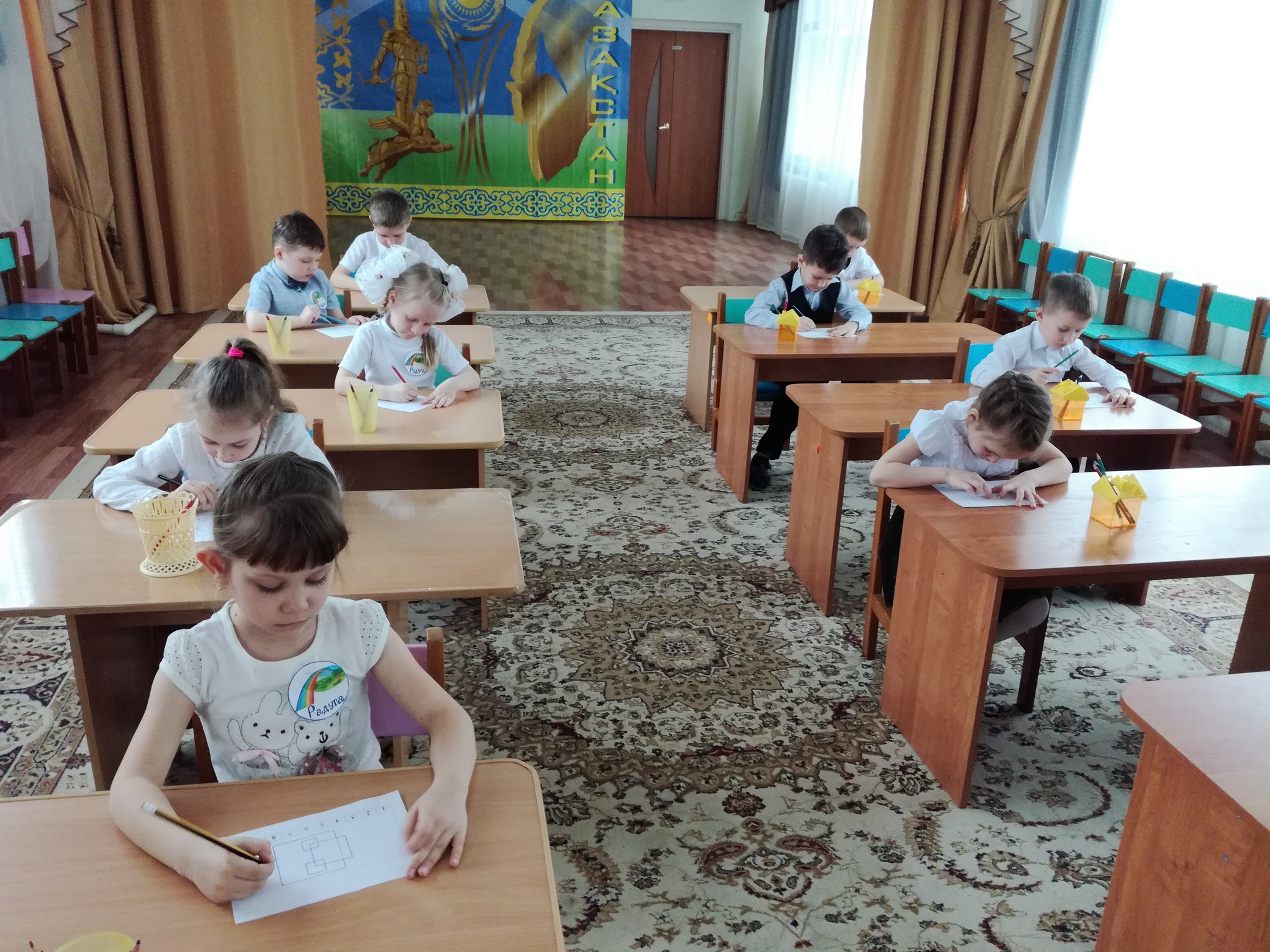 Дети и большим интересом и ответственностью их выполняли. Задания были распределены на два блока, по окончании первого проведена физкультурная минутка. Каждому заданию было отведено определённое время.