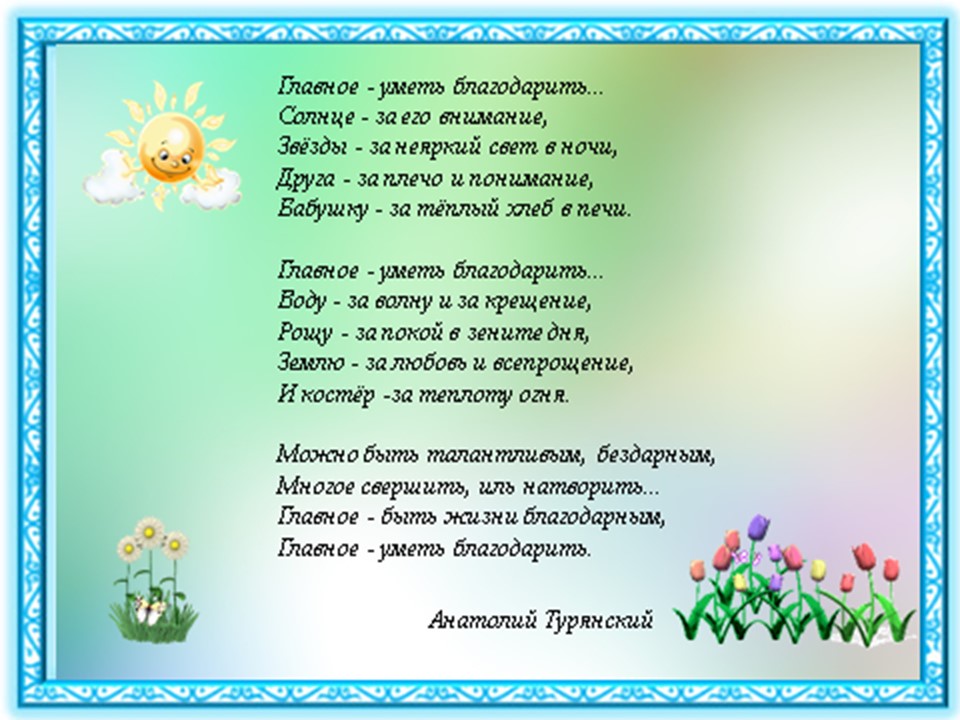 В связи с этим праздником воспитатели всех возрастов провели тематические занятия, беседы в «День Благодарности» с целью приобщения подрастающего поколения к патриотизму, высоким культурным и нравственным ценностям.